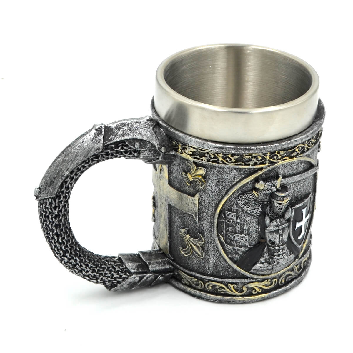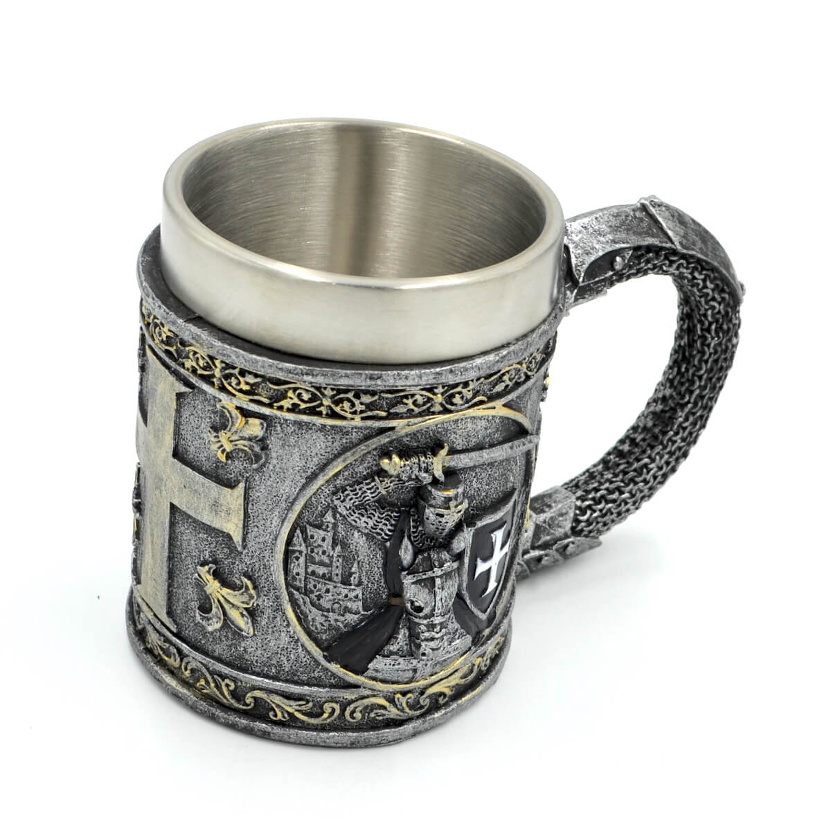 Knight’s Tankard este o cana cu design vintage, inspirata din epoca medievala, care te poarta direct in atmosfera cruciadelor, a turnirurilor si a legendelor cavaleresti. Realizata cu mare atentie la detalii, cana imbina estetica medievala cu utilitatea moderna, fiind atat un obiect practic, cat si un element decorativ impresionant.